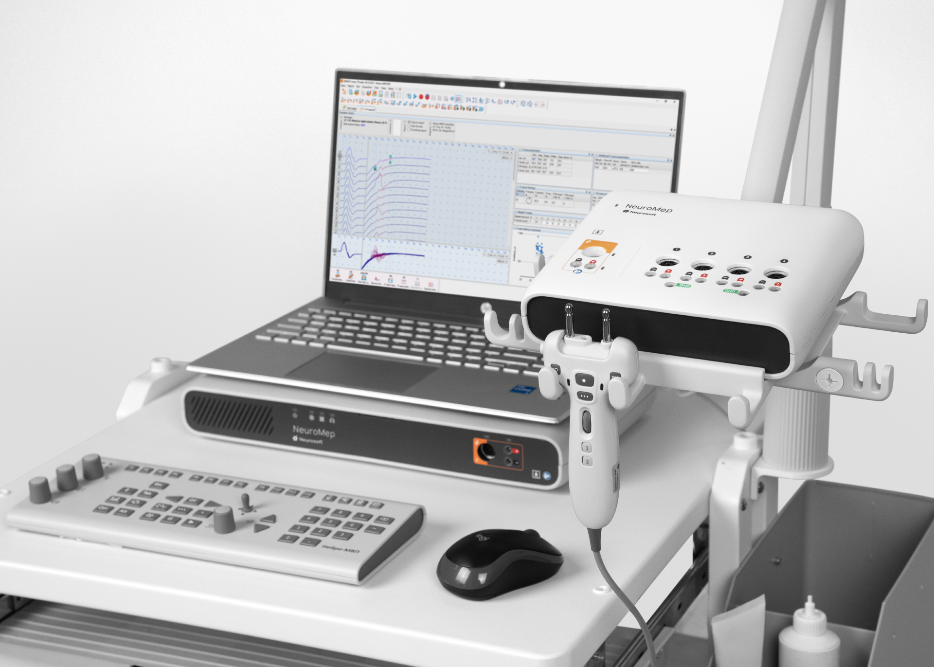 NeuroMep is a modern 4-channel EMG, NCS and EP system, setting new standards in neurophysiological diagnostics. This next-generation device from Neurosoft combines a high-tech hardware platform with the flexible, continuously updated Neuro-MEP.NET software.